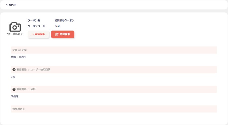 通知登録の中にあるクーポンコードに、発行済みクーポンコードを入力してください。
